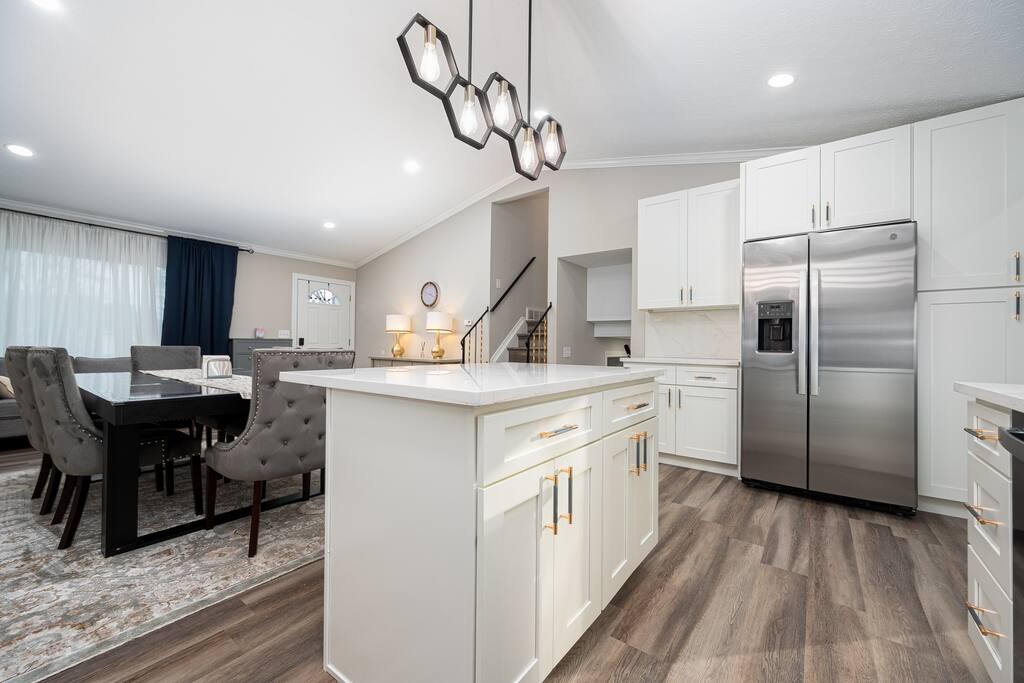 Welcome to “Gahanna Oasis”- a modern sanctuary nestled in the heart of the charming Gahanna neighborhood! Newly remodeled with luxurious upgrades throughout the bright and spacious interior, our Airbnb is perfect for families, couples, or business travelers-accommodating up to 10 guests comfortably. Conveniently located near Easton, Airport, and downtown Columbus. You will have easy access to an array of dining, shopping, and entertainment options. Make “Gahanna Oasis” your home away from home.