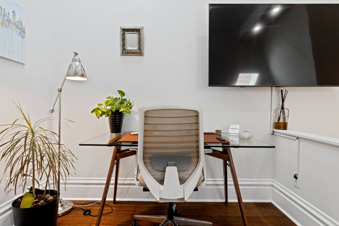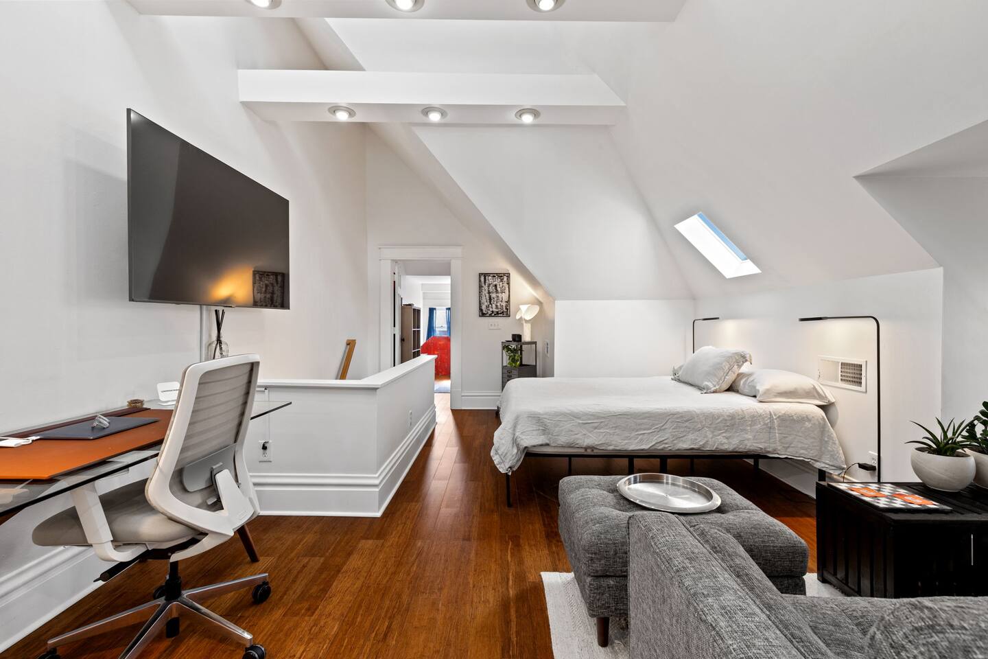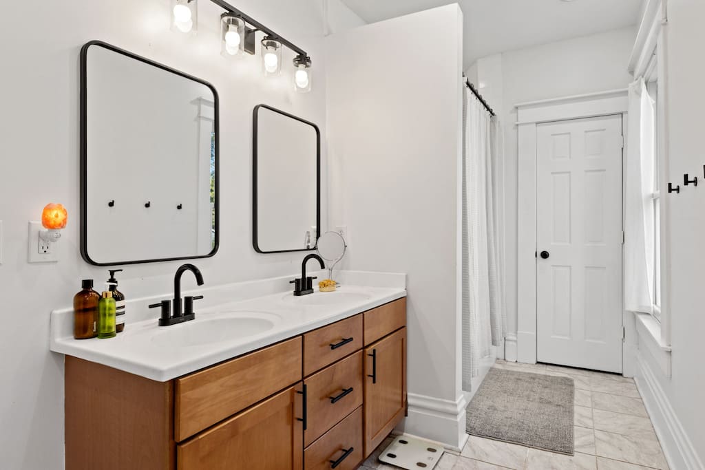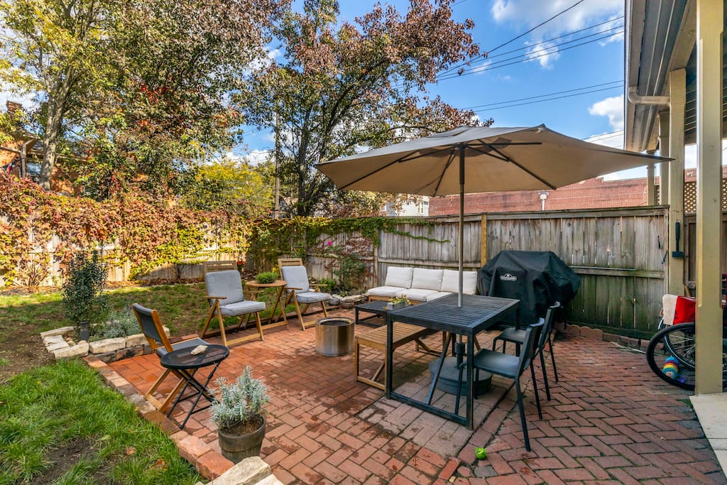 🏠 First Floor: An open-concept layout featuring a fully equipped kitchen, a six-person dining area, and a cozy living room with TV (Netflix). A convenient half bath is located just off the kitchen Second Floor: Includes a queen bedroom with TV, a dedicated office space, a king bedroom, and a full bathroom with a tub — perfect for families or business travelers needing flexibility Third Floor: Features a twin bedroom and a queen bedroom with a private den and TV, plus an en-suite bathroom with a soaking tub and separate shower for a true retreat feel Outdoor Space: Relax or entertain in the fenced backyard, complete with a gas grill, umbrella, and plenty of seating Basement: Washer, dryer, utility sink, folding table, and drying rack for guest use Amenities: The home is fully stocked with towels, linens, paper products, cleaning supplies, and a selection of books Neighborhood Highlights: Just a block from Fox in the Snow Café, a yoga studio, Thurman Café, and German Village Diner. The local farmers market, great restaurants, and two grocery stores are all within walking distance — everything you need for an authentic Columbus stay