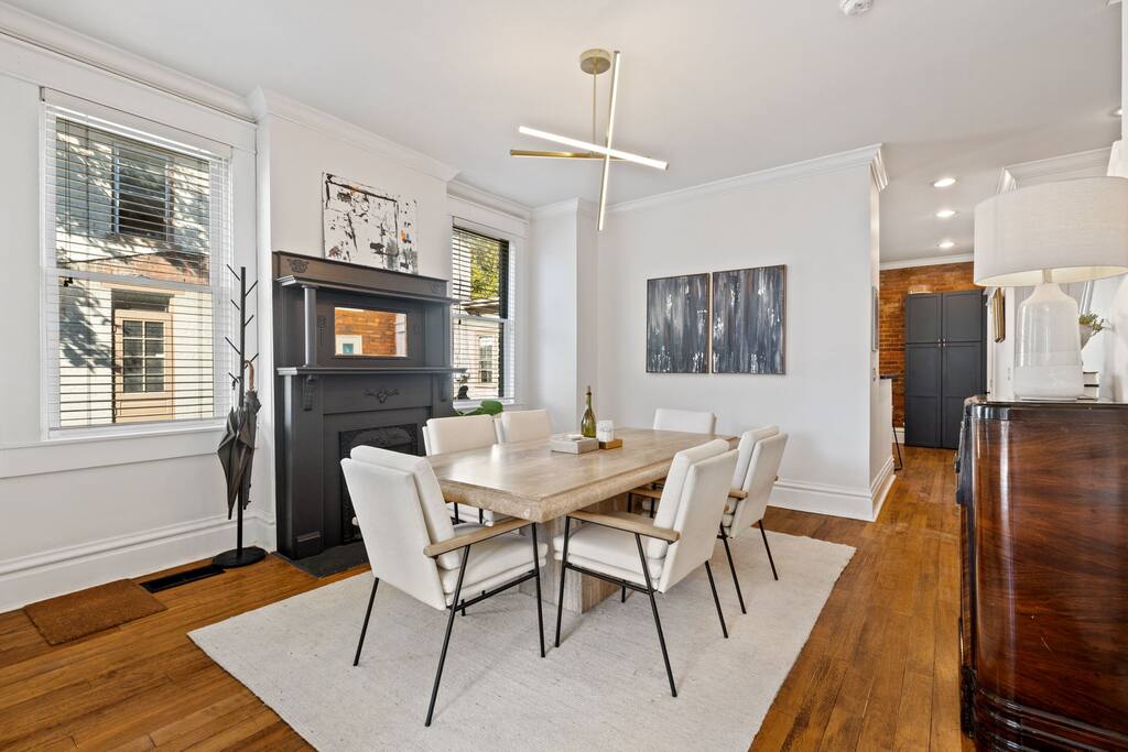 Experience the charm of German Village in this beautifully restored 3-story historic home just one block from Schiller Park. Blending old-world character with modern comfort, this fully furnished retreat offers bright, spacious interiors, elegant, exposed brick, and 10-foot ceilings throughout. Enjoy a chef’s kitchen stocked with all essentials, a cozy living room perfect for relaxing, and an inviting brick patio with grill and lounge seating. Perfect for mid-term stays